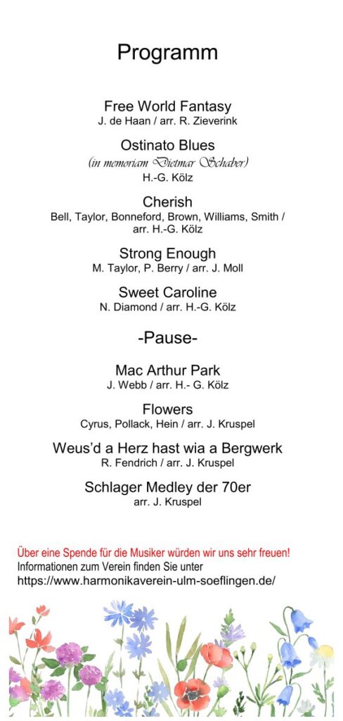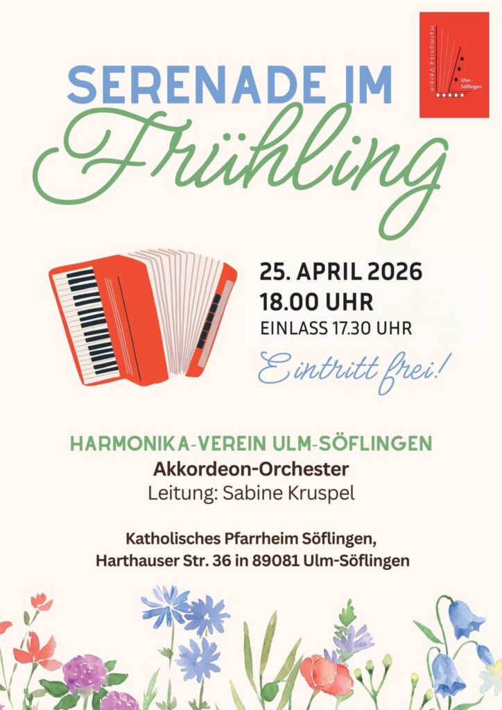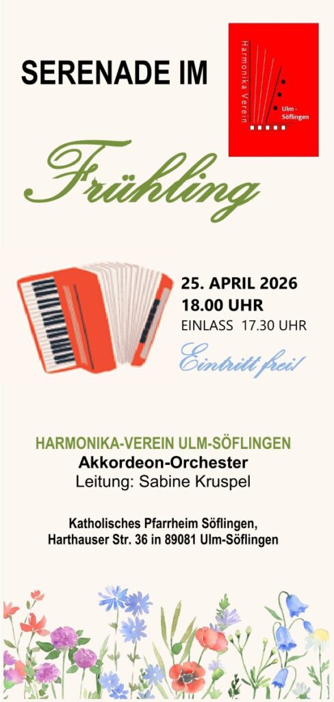 Die nächste Mundharmonika-Orchester Probe findet am Montag 13. April 2026ab 19:30 Uhrim Forsthaus Söflingen statt